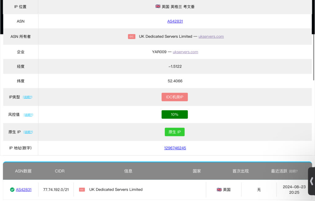 结论:可用风控值为低至中的服务器/家庭宽带的原生ip注册;邮箱最好不要用境内的太大众化的邮箱如163/qq一类;网页登录仅需注册国的ip(原生ip/广播ip均可)(均不为“万人骑”ip)