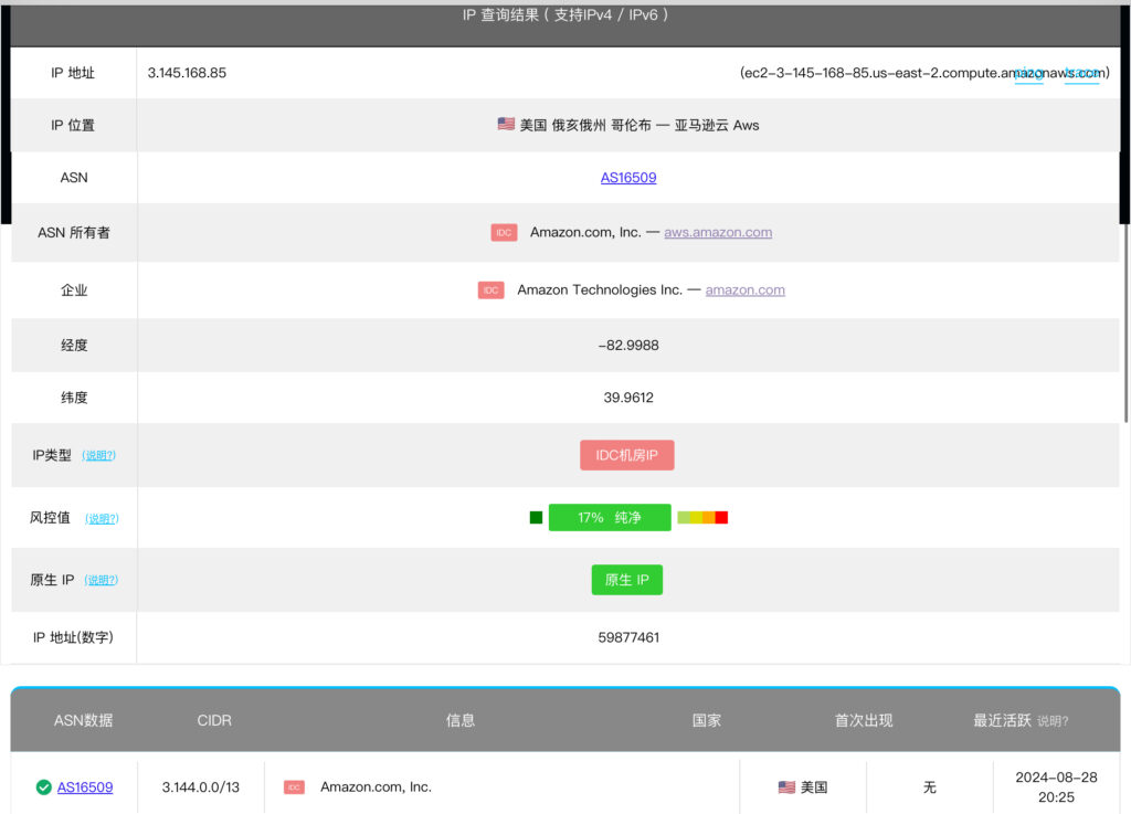 虽然两个注册都是双isp的原生+家宽ip,不过都像这个ip一样被打上了vpn的标签